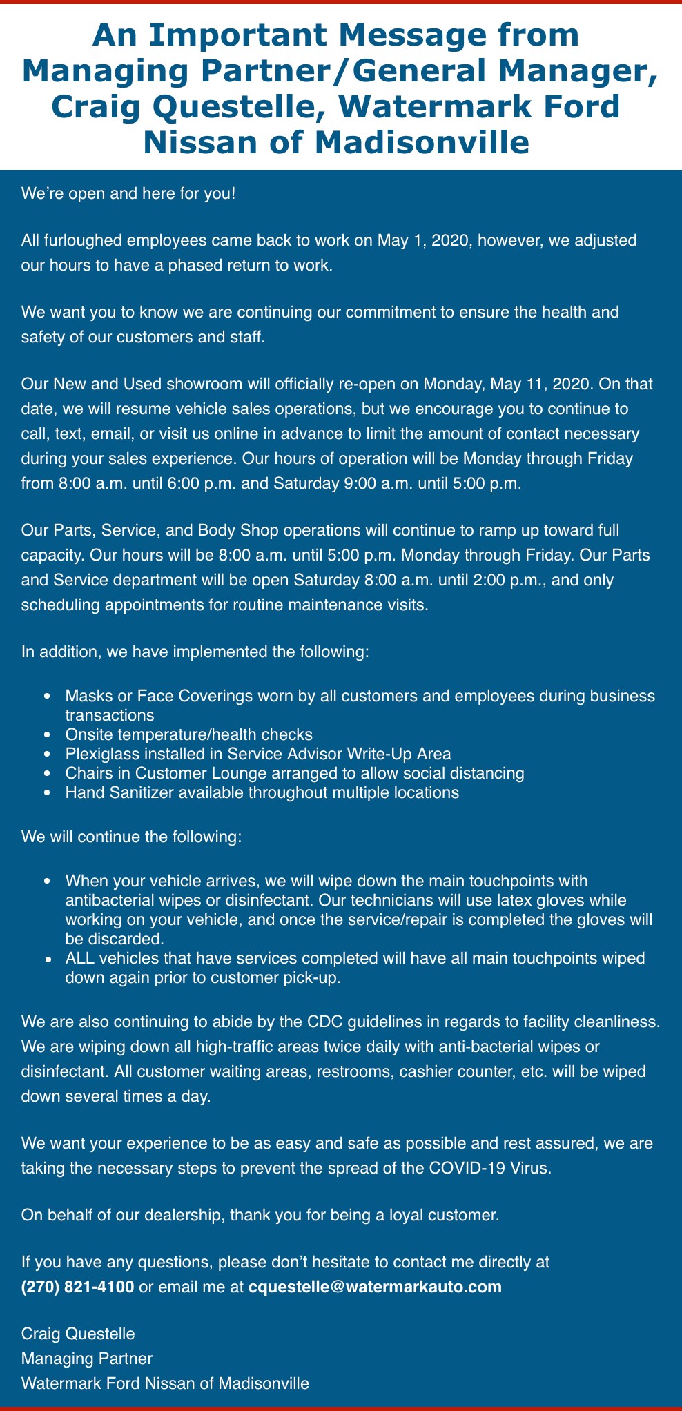 Showroom Hours